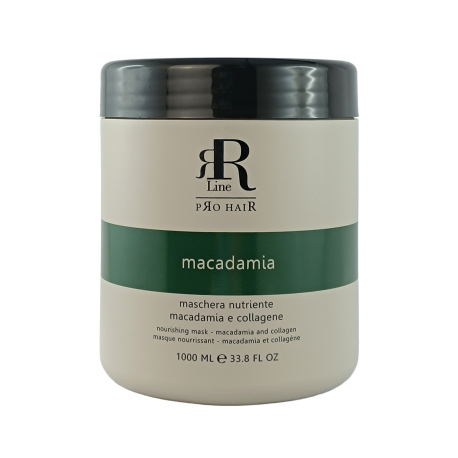 RR Line Macadamia to linia zawierająca olejek makadamia i kolagen. Olejek makadamia dodaje blasku, zmiękcza włos i nadaje jedwabistą lekkość. Natomiast kolagen wypełnia ubytki, głęboko nawilża kosmyki oraz nadaje elastyczności i gęstości.